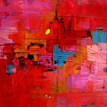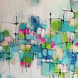 Een globale impressie van het schilderij "Flower power" 40x80cm.
