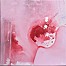 Acryl met inkt, rozen knop met calligrafie