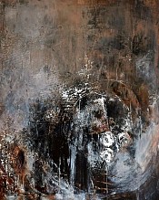 Een abstract werk, met veel textuur in prachtige herfstkleuren.