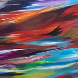Abstract Schilderij op canvasdoek. "Wolken" is een abstract geschilderd werk met kleuren die niet in de natuur te zien zijn. Juist dit maakt het aantrekkelijk om naar te kijken. "Wolken" is ontstaan uit een sterk gevoel voor vrijheid in de schilderkunst. Vandaar dat ik het abstract noem. Het is niet op een frame gespannen.
