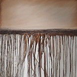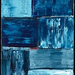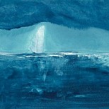 Een globale impressie van het schilderij "Oranje zon" 20x20cm.