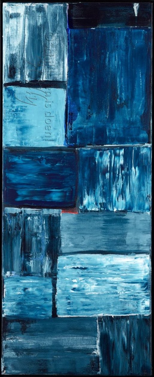Een globale impressie van het schilderij "Denk niet Zwart / Wit" 43x103cm.