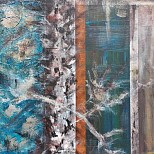 Recycle art, een leuk kringloop doekje gekocht, deze hergebruikt, acryl op canvas, mixed media