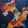 Abstract schilderij op masonite Mixed Media. 55x55x5cm