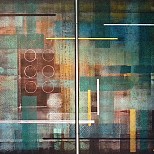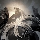 Abstract, modern, hedendaags, rood, zwart, zilver, bruin, cirkels, beweging, warm, eye-catcher, canvas, doek, acryl, vierkant